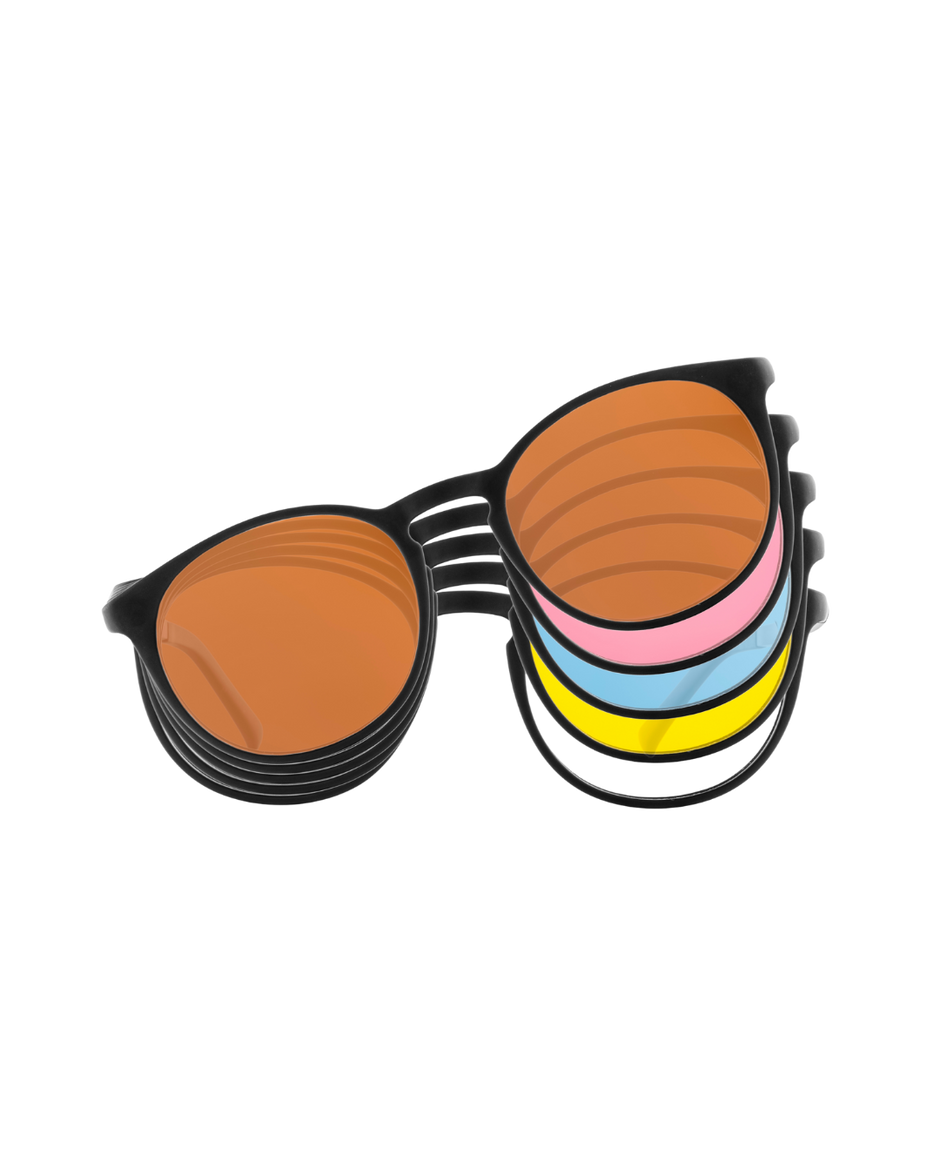 Al comenzar tu día, necesitas agudeza mental y enfoque despierto. Coloca el clip-on Amarillo (Clarity) sobre tu armazón universal. Esta es la luz que despeja la mente, creando una atmósfera de claridad.